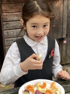 Year 2 pupils enjoying the fruit salad they made