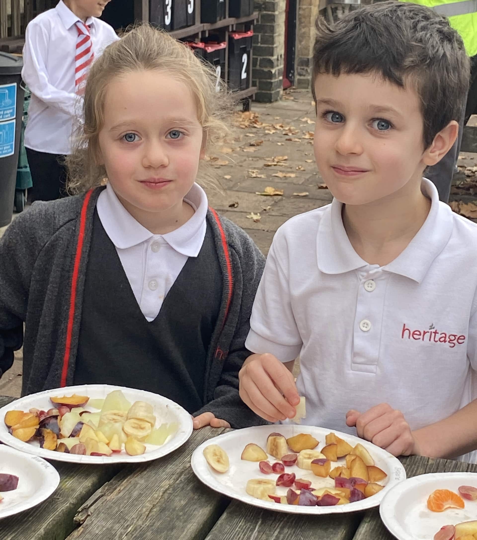 Year 2 pupils enjoying the fruit salad they made