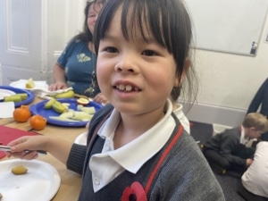 Year 2 pupils enjoying the fruit salad they made