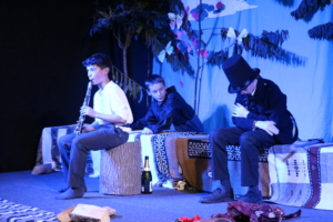 Year 8 pupils performing The Tempest on stage