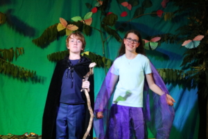 Year 8 pupils performing The Tempest on stage