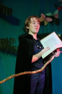 Year 8 pupils performing The Tempest on stage